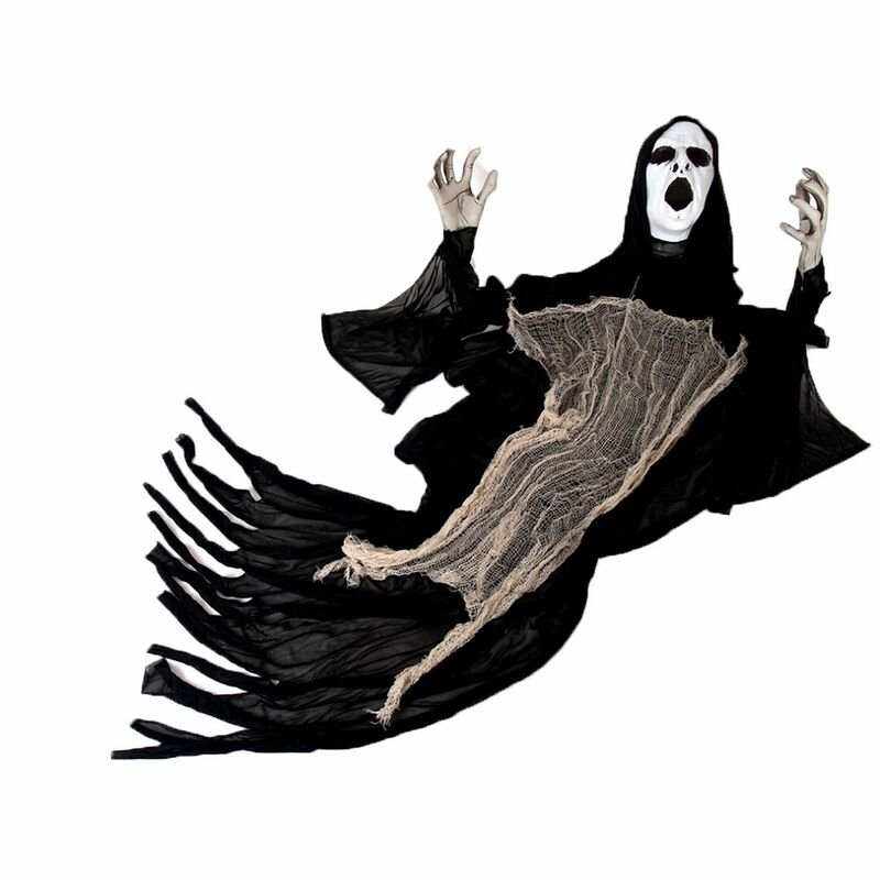 Description Ajoutez une touche effrayante à votre décoration d'Halloween avec ce spectre suspendu avec cape noire et masque fantomatique .... En savoir plus