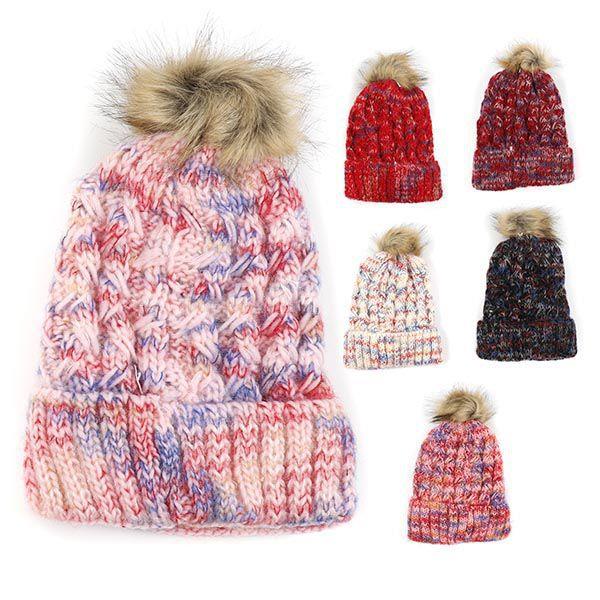 Bonnet Tricoté avec Pompon en Fourrure - Design Multicolore