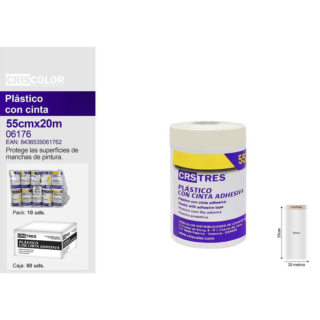 Plástico con Cinta Adhesiva CrisColor 55cm x 20m – Protección para Pintura